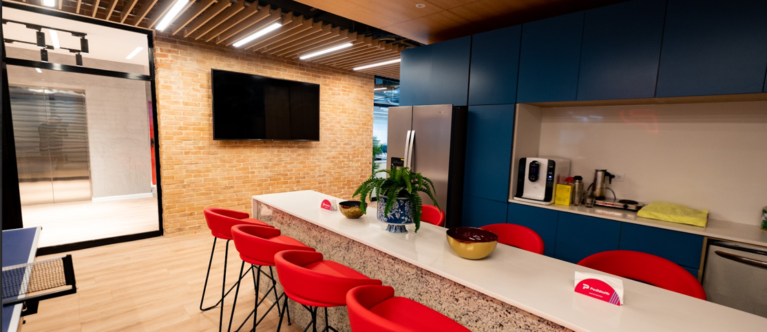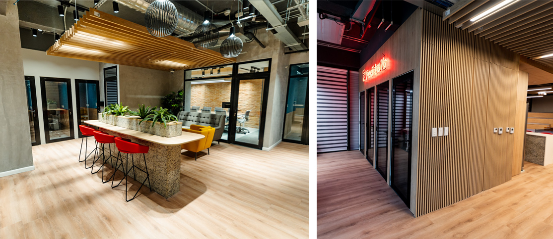 Este proyecto corresponde a la sede principal de Pedidos Ya en República Dominicana, distribuida entre el quinto y sexto nivel del Edificio Corporativo OV. El quinto piso, con una superficie total de 414 m², fue intervenido en su totalidad, mientras que en el sexto piso se desarrolló la adecuación del ala oeste, correspondiente a 207 m² adicionales.